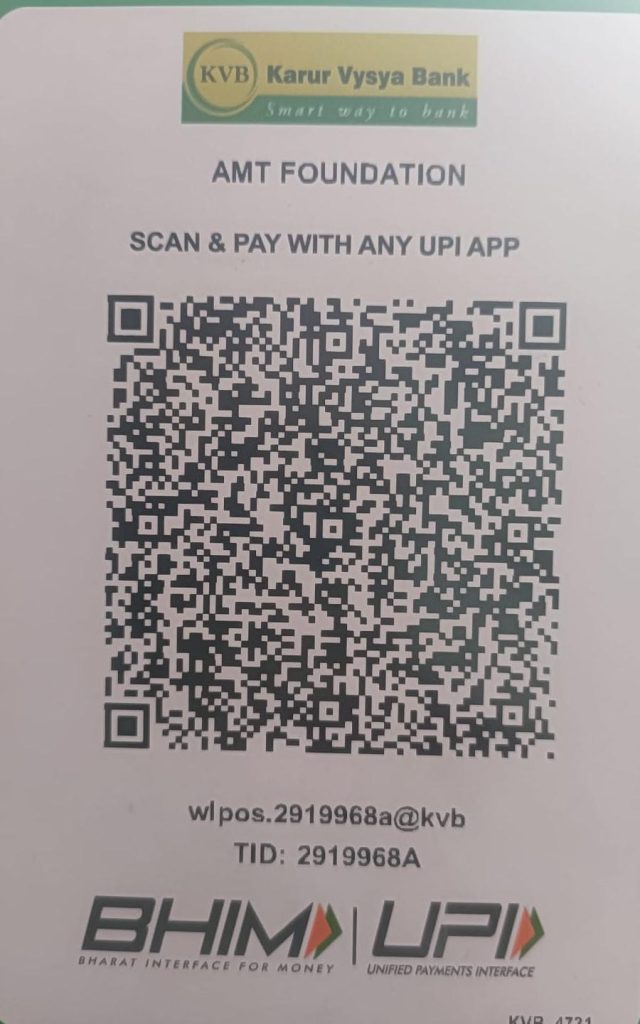 Donation Bank Account Account name: AMT Foundation Account number : 1185011000000389 IFSC: KVBL0001185 Bank: Karur vysya bank Want to make a difference? Help us raise money for our humanitarian causes Donate